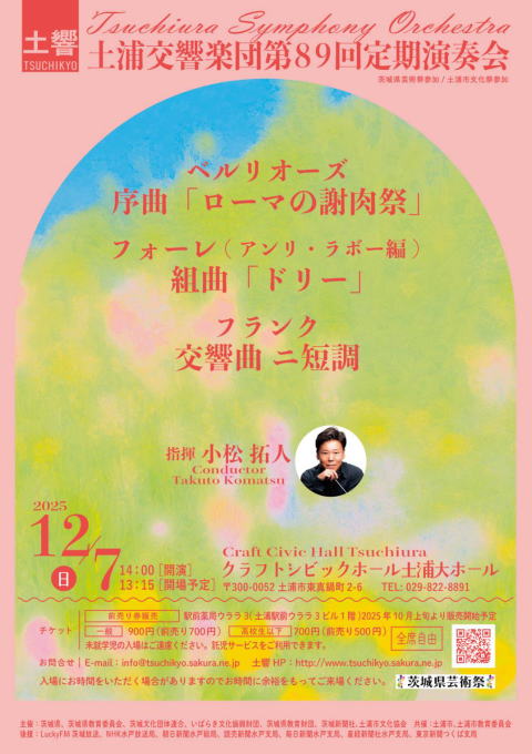 日時 2025年12月7日(日) 14時開演 場所 クラフトシビックホール土浦 大ホール 曲目